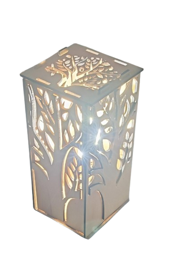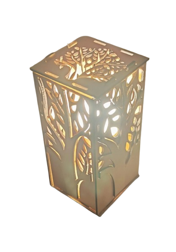 Lampe bois motif arbre de vie